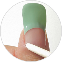 Trim any excess with nail scissors. File the edge gently in one direction under your nail for a smooth edge.