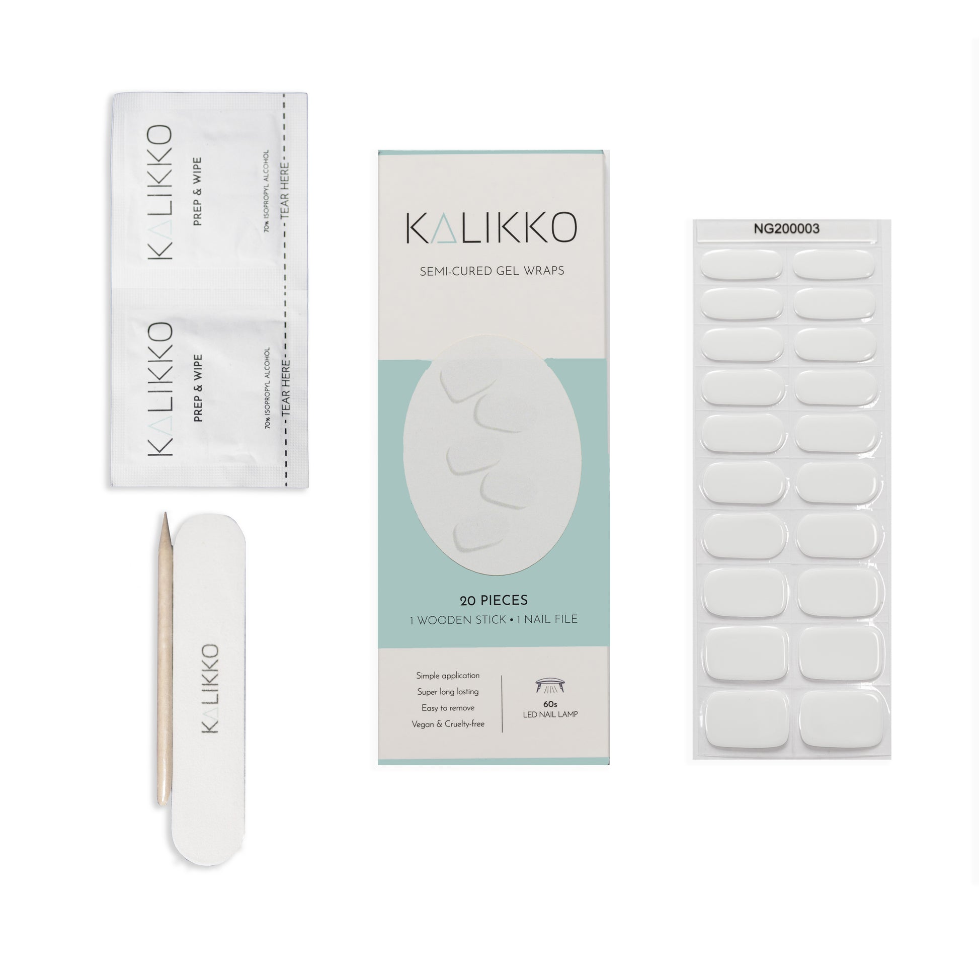 What is it: Kalikko semi-cured gel wraps are made from salon-quality gel nail polish. This innovative product combines the top coat, a pigmented layer, and an adhesive base into flexible gel nail strips that must be filed down to your natural nail length and cured for 60 seconds. They deliver a glossy, high-shine manicure from the comfort of your own home or on the go. Plus, they are comfortable and long-lasting with up to 2 weeks of wear.