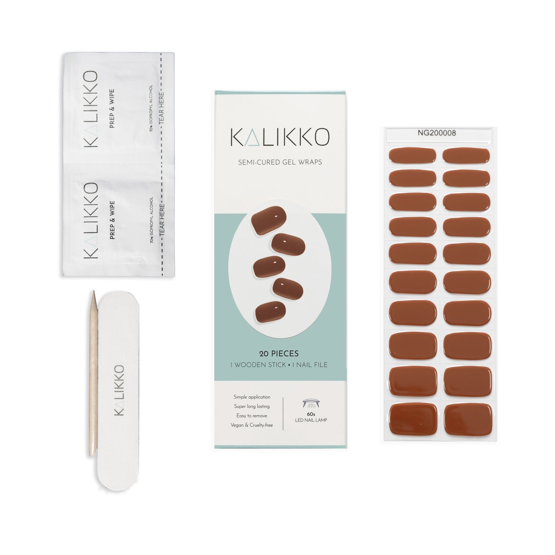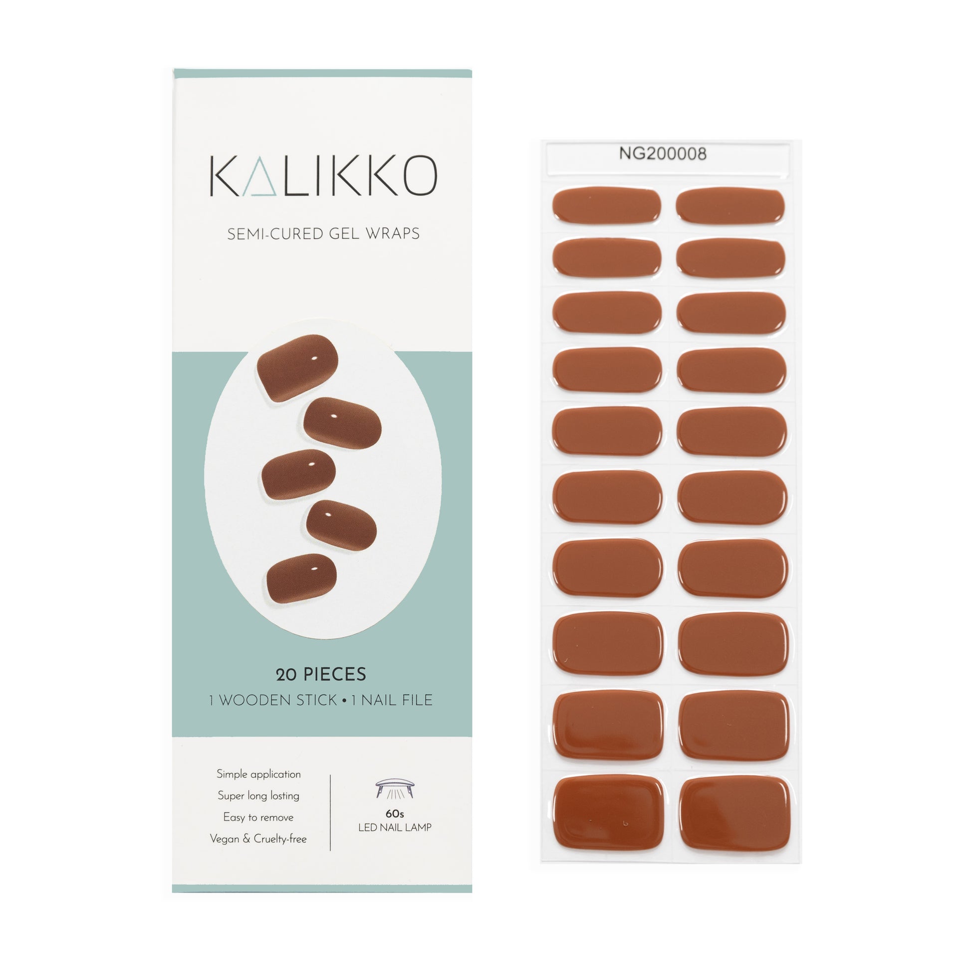What is it: Kalikko semi-cured gel wraps are made from salon-quality gel nail polish. This innovative product combines the top coat, a pigmented layer, and an adhesive base into flexible gel nail strips that must be filed down to your natural nail length and cured for 60 seconds. They deliver a glossy, high-shine manicure from the comfort of your own home or on the go. Plus, they are comfortable and long-lasting with up to 2 weeks of wear.