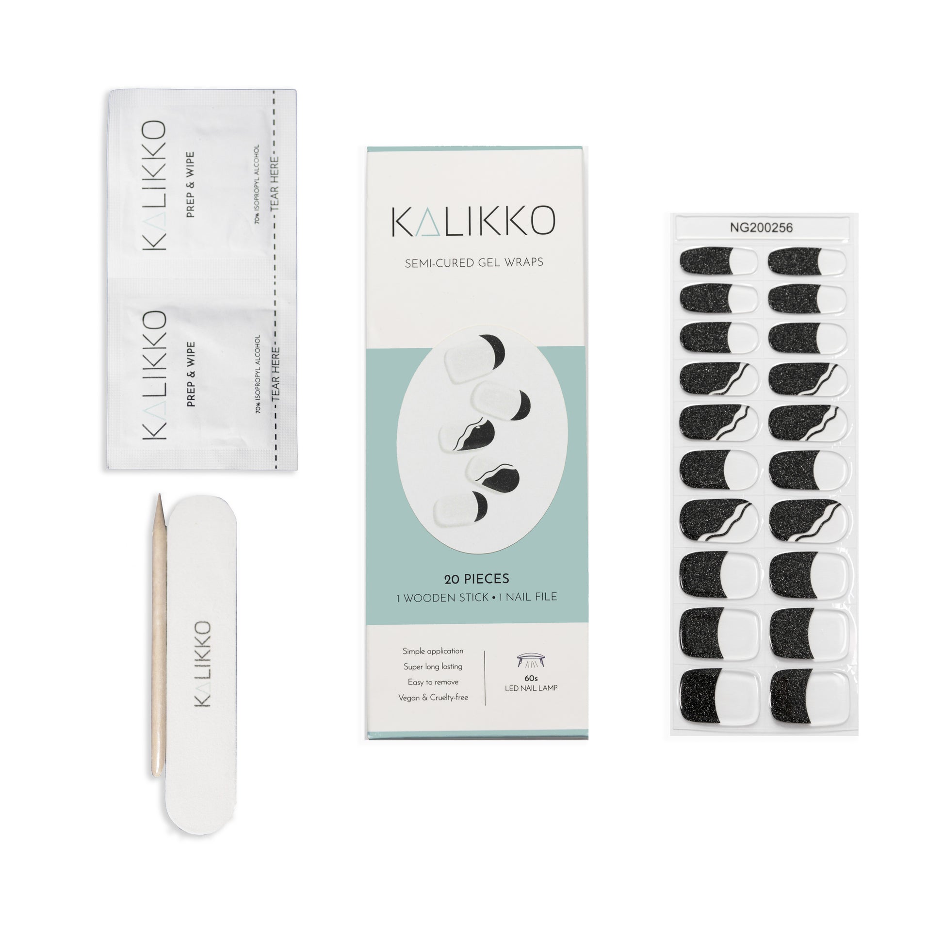 What is it: Kalikko semi-cured gel wraps are made from salon-quality gel nail polish. This innovative product combines the top coat, a pigmented layer, and an adhesive base into flexible gel nail strips that must be filed down to your natural nail length and cured for 60 seconds. They deliver a glossy, high-shine manicure from the comfort of your own home or on the go. Plus, they are comfortable and long-lasting with up to 2 weeks of wear.